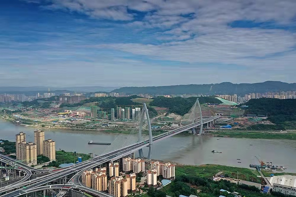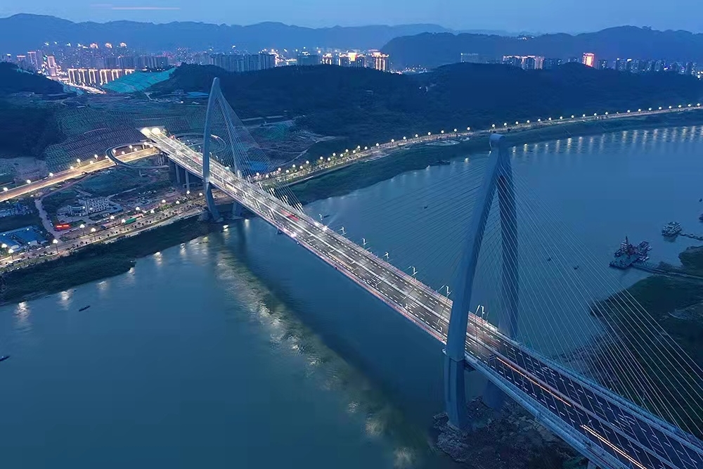 四川宜賓鹽坪壩長江大橋是宜賓市城市內(nèi)環(huán)線的重要跨江節(jié)點工程,也是宜賓目前體量最大的橋梁。索塔是全國首次采用的“魚躍長江”造型,猶如一條躍出水面、向上飛騰的江魚。